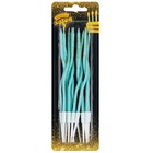 Свечи в виде тонких голубых спиралек с золотыми искрами с подставками, изящное украшение для Вашего торта. Главное, успеть загадать желание, глядя на искрящийся каскад свечей. В упаковке 12 штук высотой 13см.