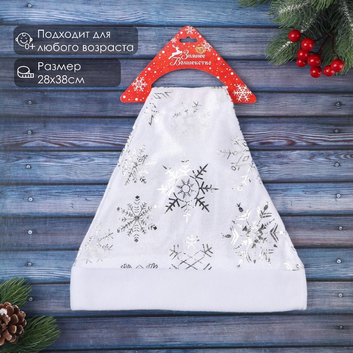 Колпак новогодний «Белый со снежинками» 28×38 см, белый