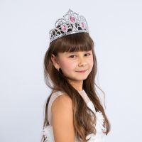 Корона пластиковая, 3 бриллианта, Серебро/Розовый