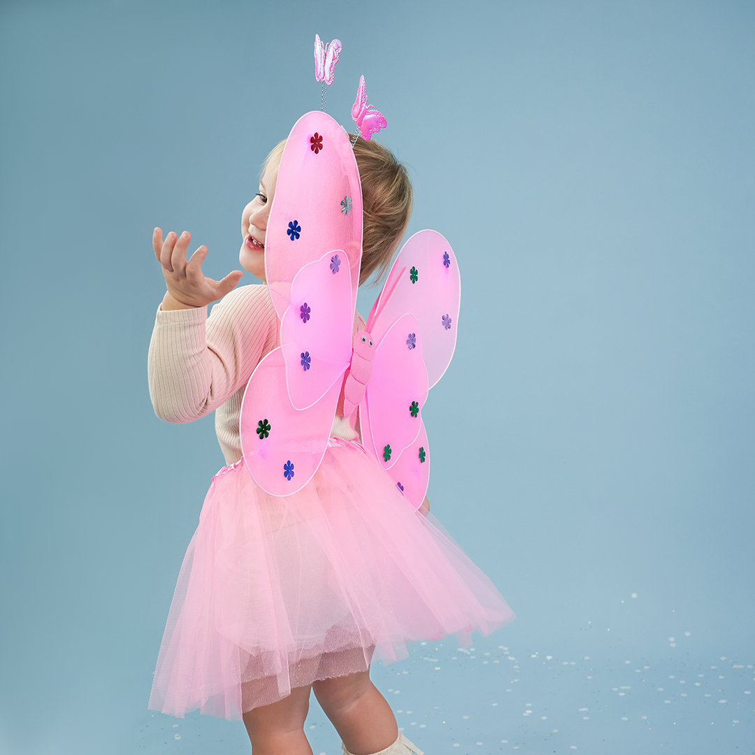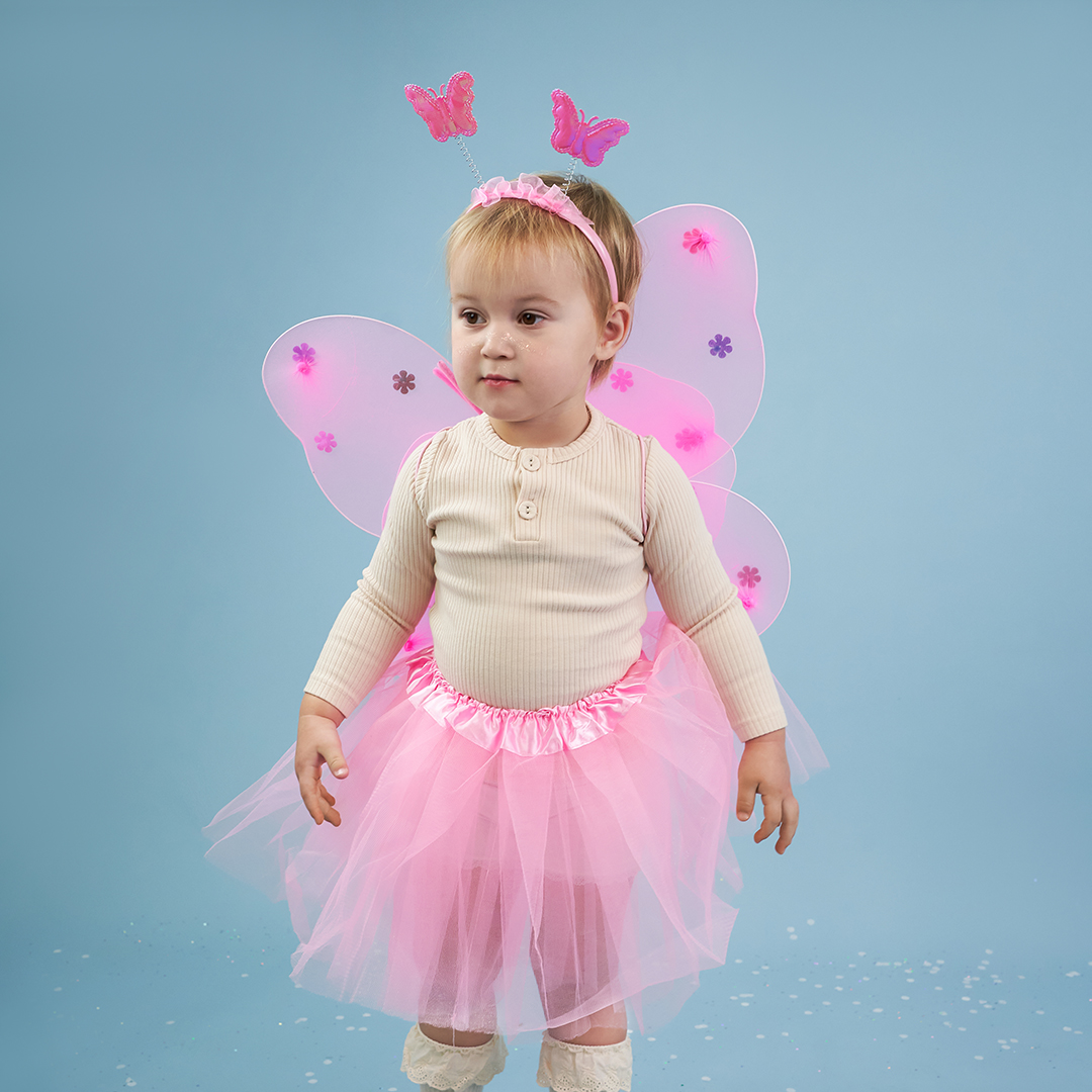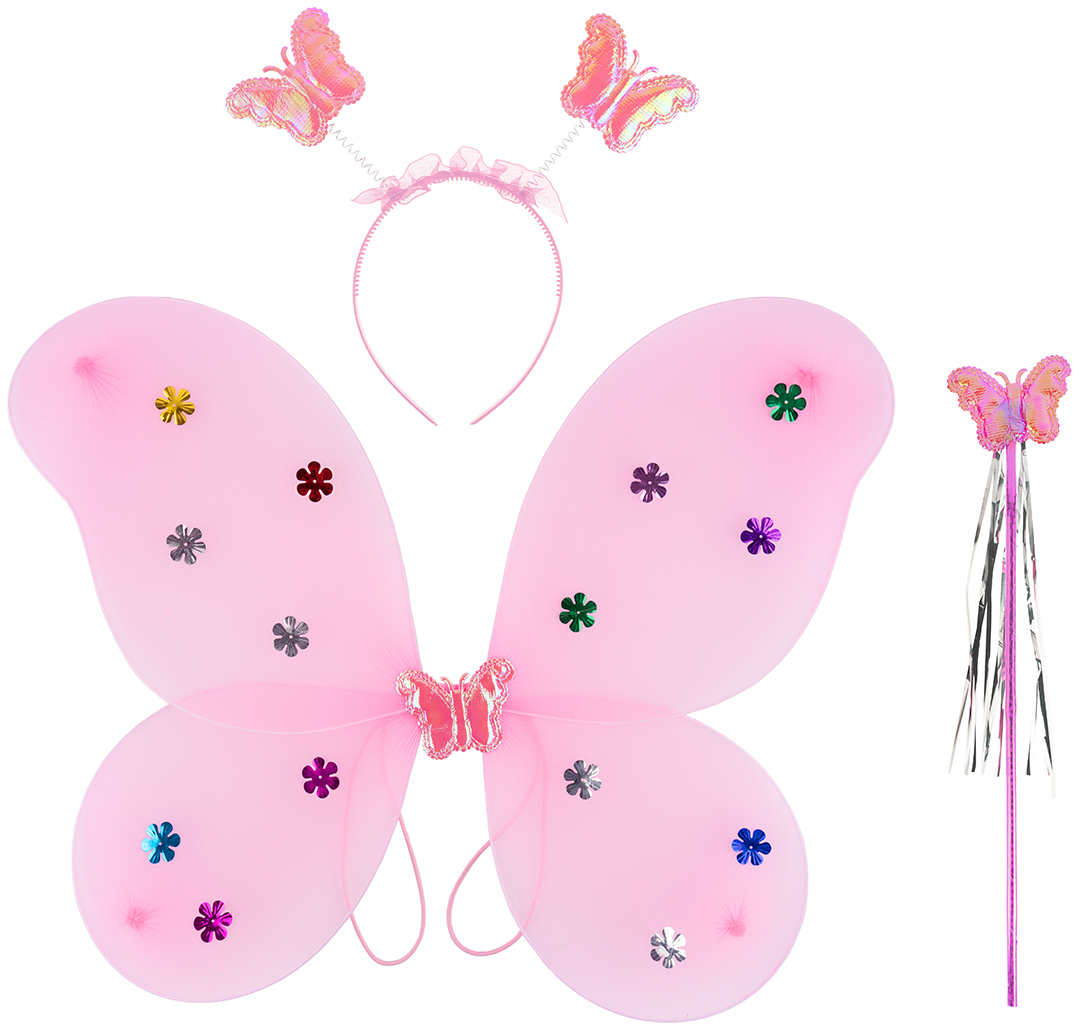 Набор (ободок, крылья, волшебная палочка), Фея Бабочка, с пайетками, Розовый, с блестками, 48*38 см