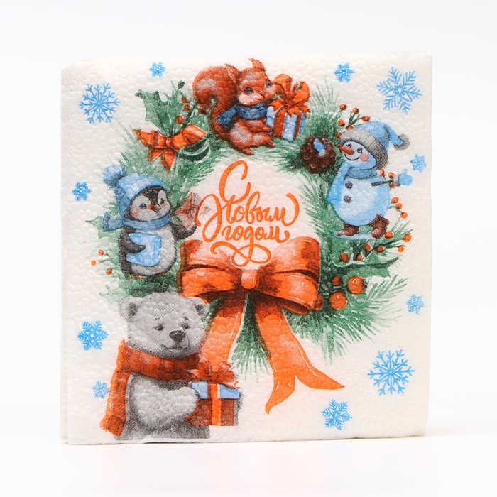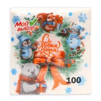 Новогодние бумажные салфетки бренда Мой выбор с рисунком "Рождественский венок" - это отличное украшение для вашего праздничного новогоднего стола. Идеально подойдут как для сервировки, так и в качестве декора и украшения как в домашних условиях, так и на больших праздничных мероприятиях. Салфетки с уникальным рисунком будут хорошим подарком для родных и близких. Данные салфетки можно использовать так же для декупажа и коллажей.
