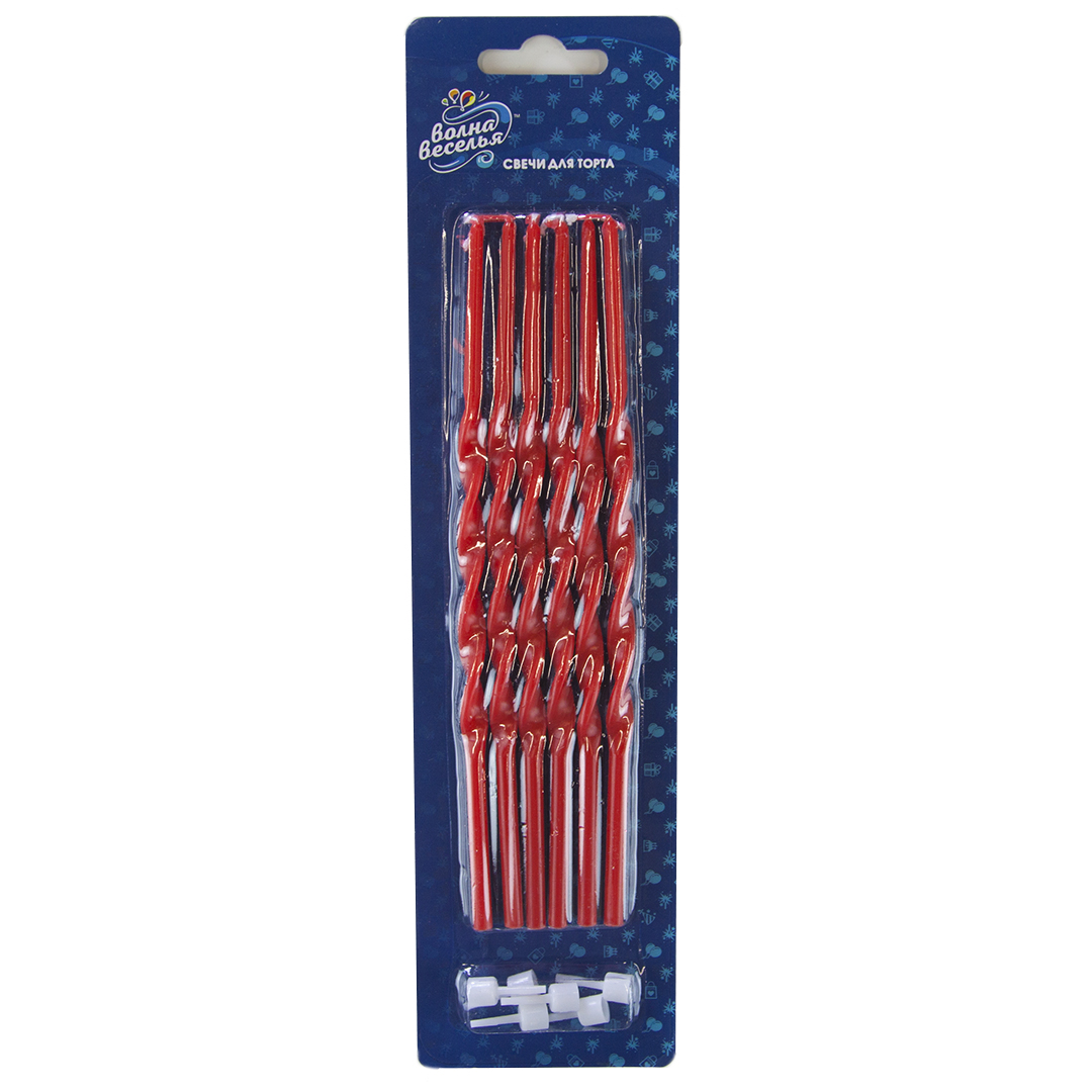 Свечи Спирали Люкс, Красный, 18 см, 6 шт. с держат.