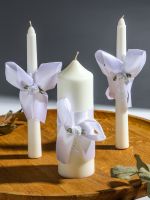 Создайте атмосферу трепетной элегантности и семейного тепла с этим набором из трёх классических свечей. Их строгий силуэт и безупречный белый цвет станут символом чистоты и начала нового этапа жизни, наполняя церемонию торжественностью и светом.